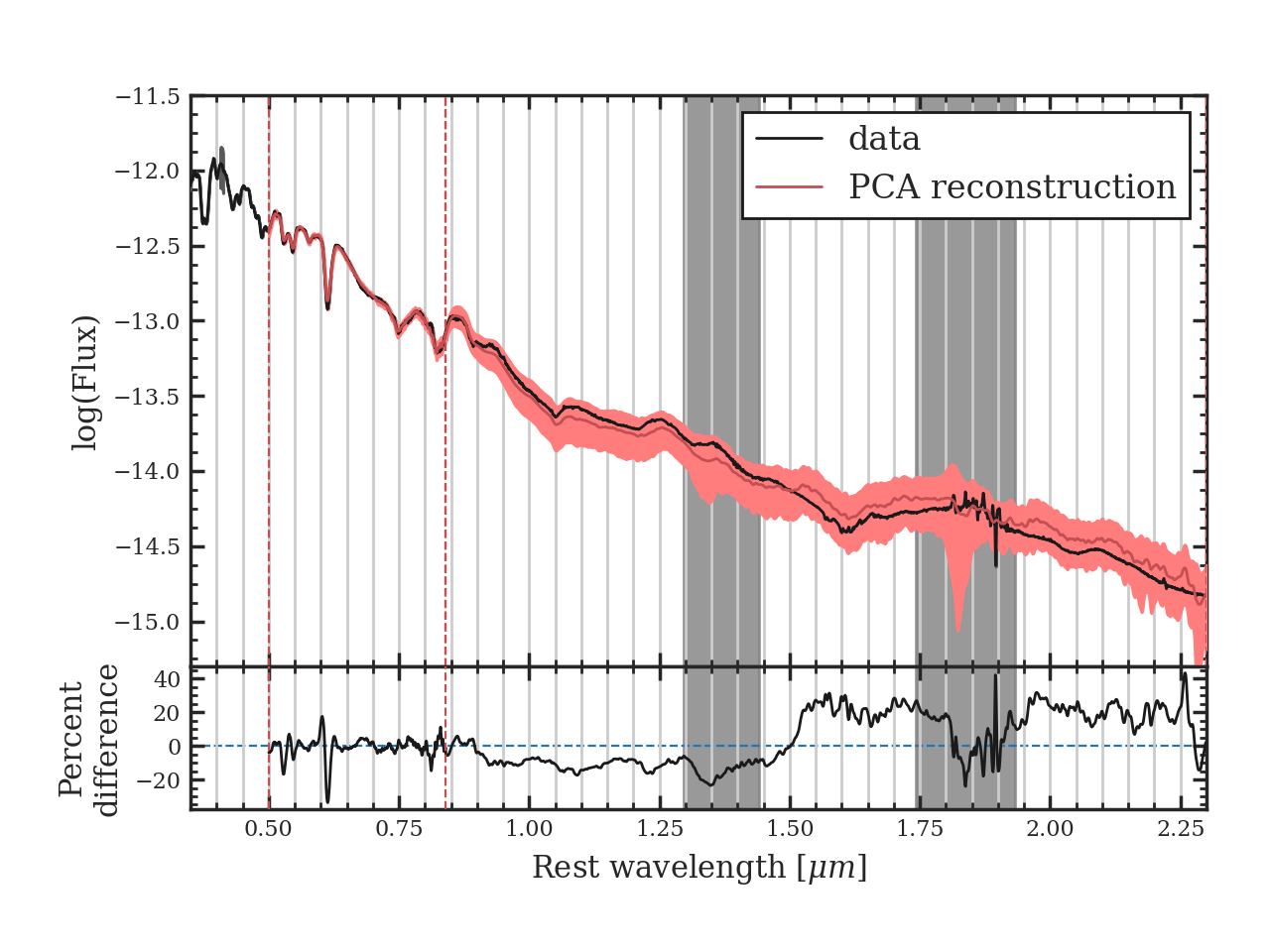 Essentially, PCA is performed on a set of optical+NIR data to get a set of eigenvectors that span both wavelength regimes. This software takes an input optical spectrum, projects it onto the eigenvectors, and the result allows for a prediction in the NIR. For more detail on how this extrapolation procedure works, see the publication by Burrow et al. (2024).